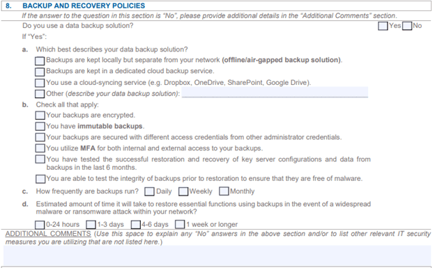 Fig 2: Example of a questionnaire in a cyber insurance application form