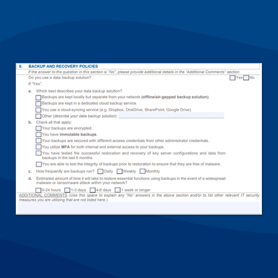 Cyber insurers are raising the bar. To qualify for coverage and ensure payouts when incidents occur, businesses must prove they have more than basic defenses in place. Requirements now often include immutable backups, tested recovery plans and clearly defined recovery time objectives (RTOs).
